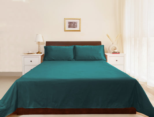 Cotton 300TC Solid Bedsheet (Teal Blue)