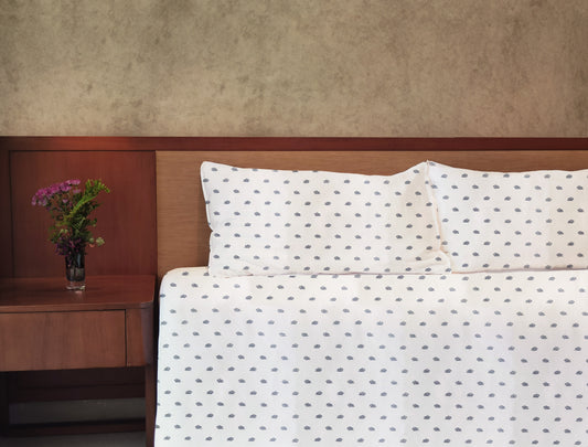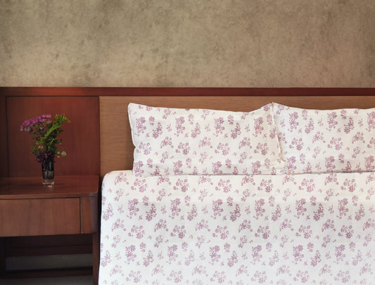 Cotton 300TC Printed Bedsheet - Provencal Petals (White Grey)