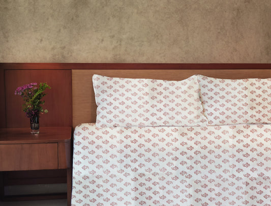 Cotton 300TC Printed Bedsheet - Mediterranean Meadows (White Red)
