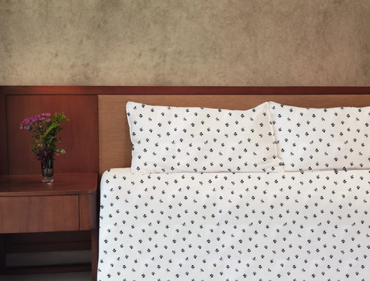 Cotton 300TC Printed Bedsheet - Mediterranean Meadows S (White Black)