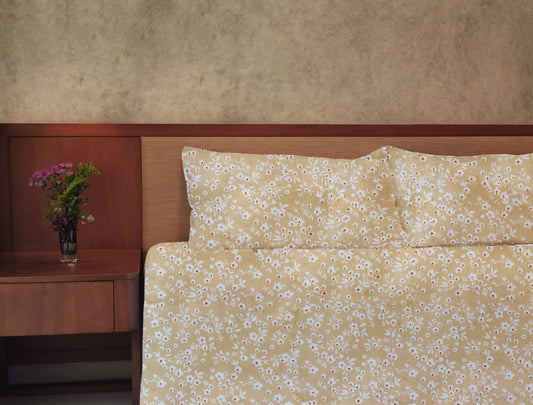 Cotton 300TC Printed Bedsheet - Nordic Blossoms (Yellow White)