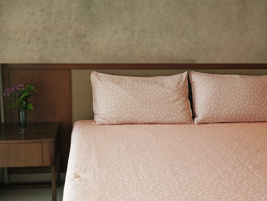 Cotton 300TC Printed Bedsheet - Provencal Petals (Apricot White)