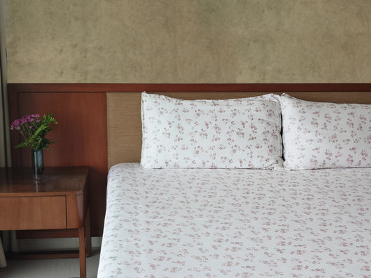 Cotton 300TC Printed Bedsheet - Provencal Petals (White Apricot)