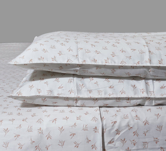 Cotton 300TC Printed Bedsheet - Renaissance Blooms (White Brown)