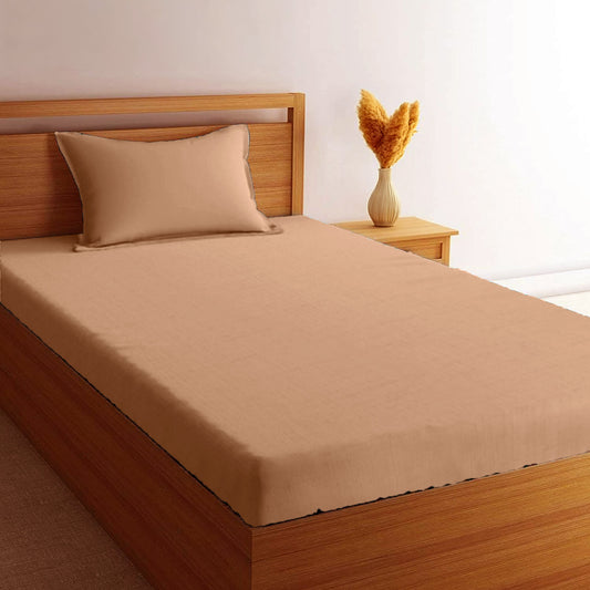 Cotton 210TC Solid Single Bedsheet (Beige)
