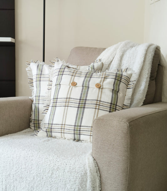 Decorative Cushion Covers Set of 2 - Cotton (Green & White Checks)