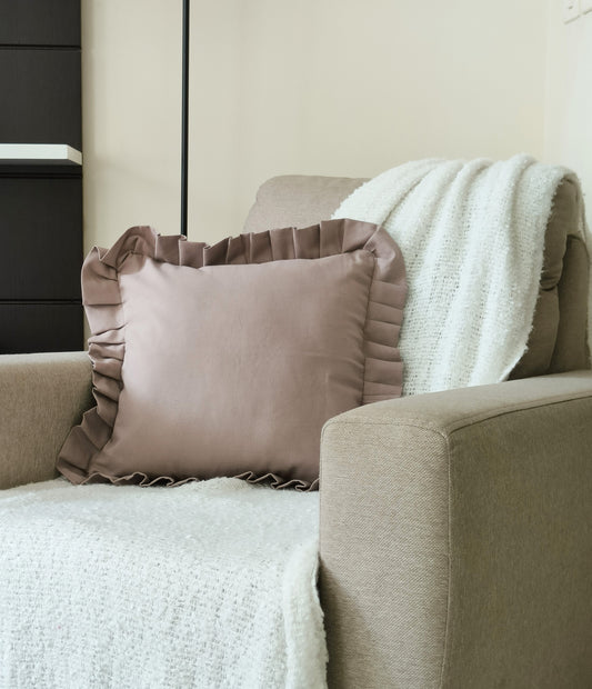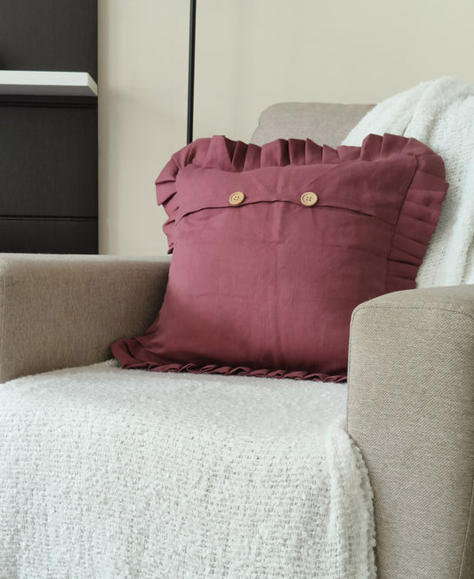 Ruffles Decorative Cushion Covers Set of 2 - Cotton (Walnut Brown)