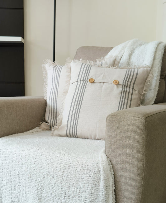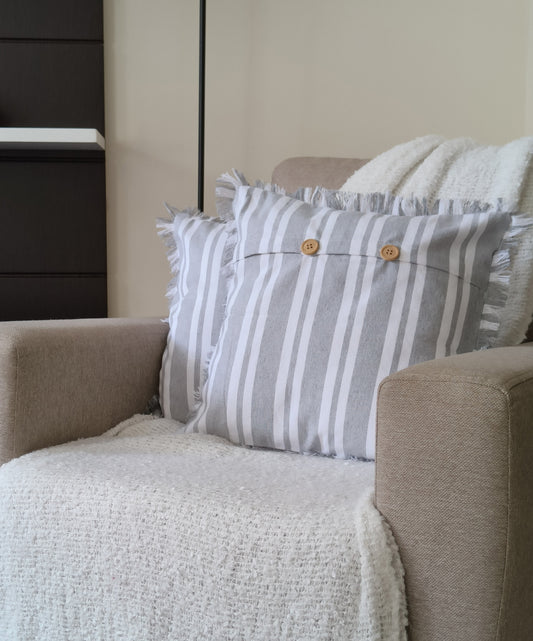 Fringes Decorative Cushion Covers Set of 2 - Cotton (Grey & White Stripes)