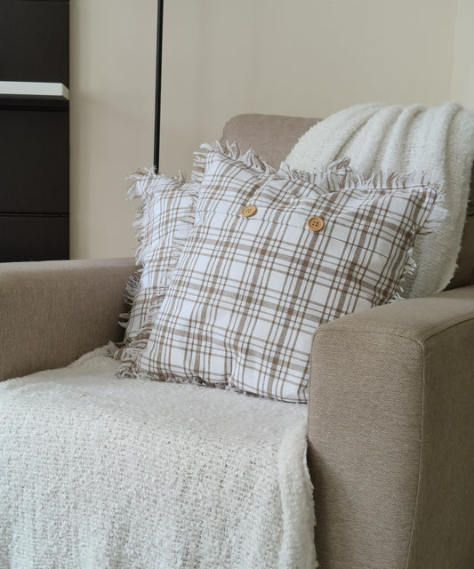 Fringes Decorative Cushion Covers Set of 2 - Cotton (Brown & White Checks)
