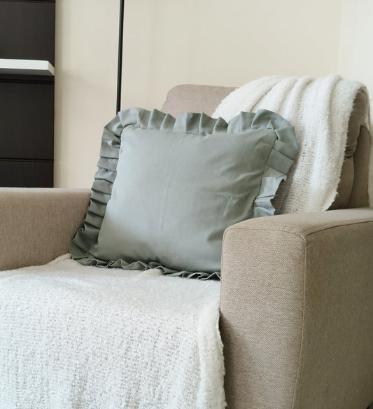 Ruffles Decorative Cushion Covers Set of 2 - Cotton (Thyme Green)