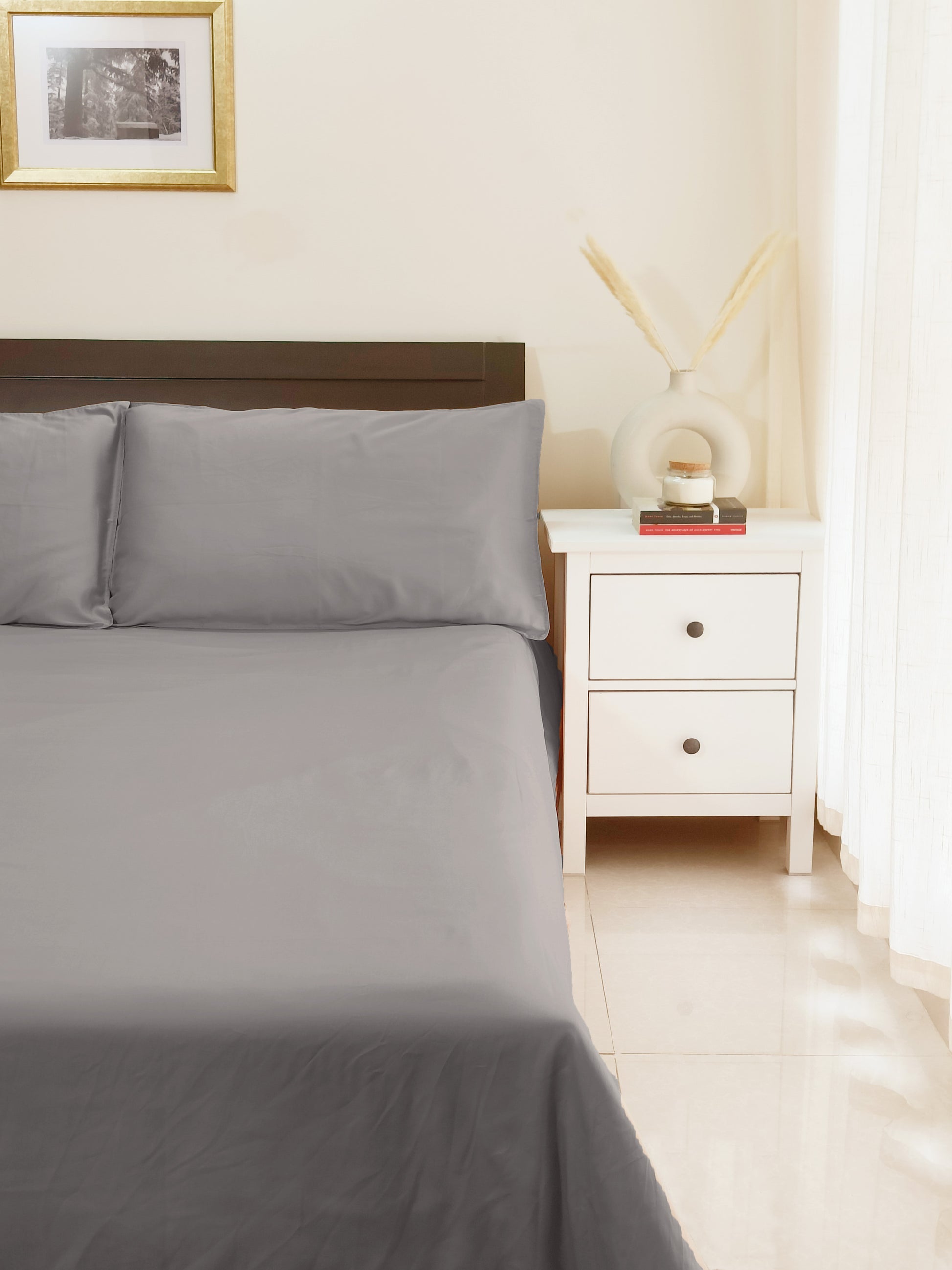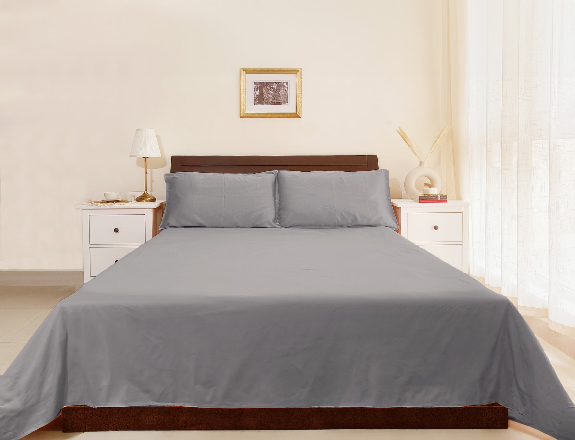 Cotton 300TC Solid Bedsheet (Ash Grey)