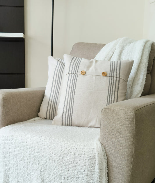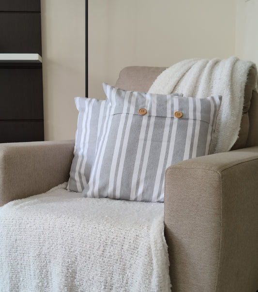 Decorative Cushion Covers Set of 2 - Cotton (Grey & White Stripe)