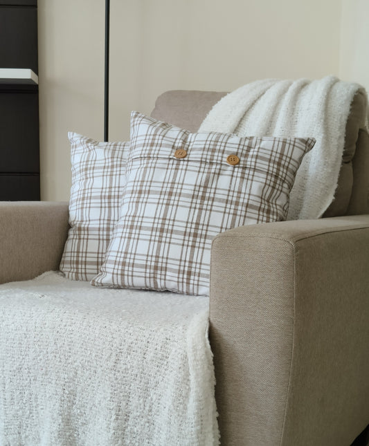 Decorative Cushion Covers Set of 2 - Cotton (Brown & White Checks)